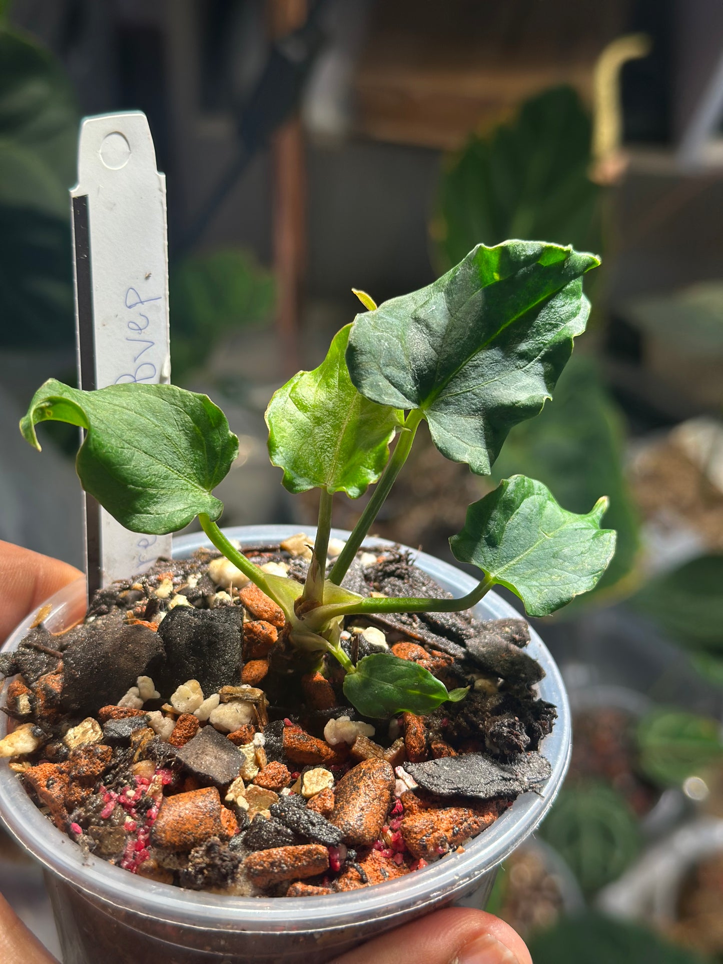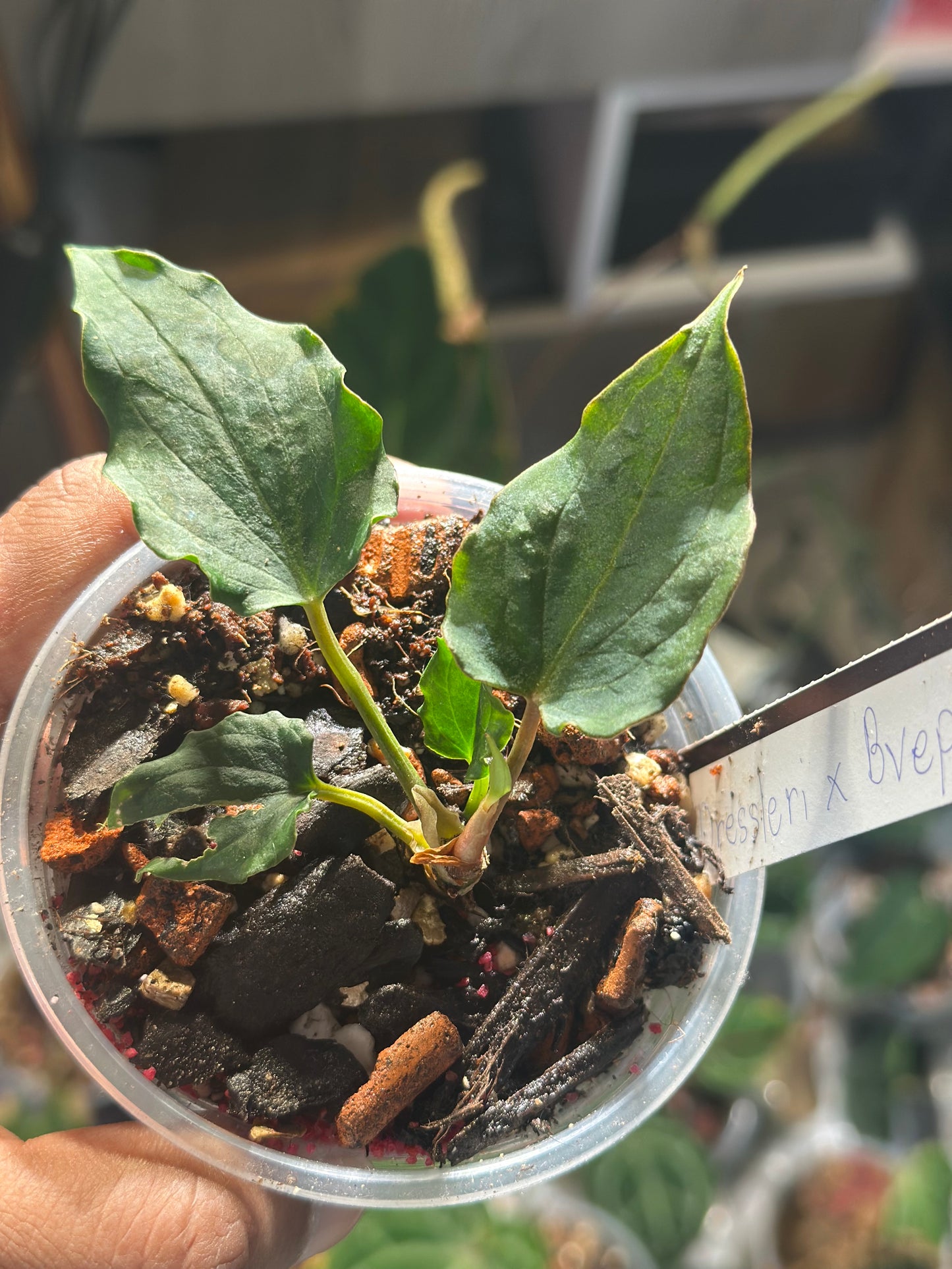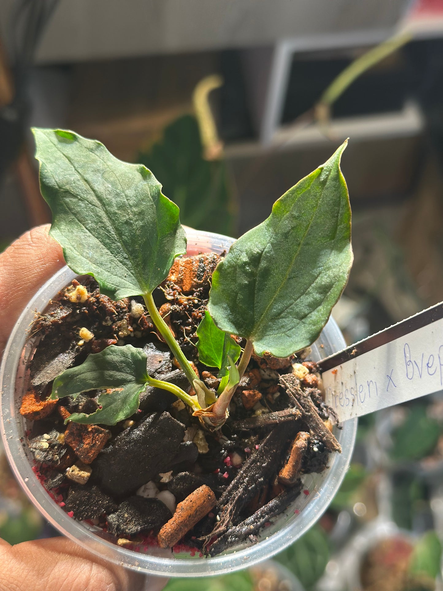 Die Mutterpflanze Anthurium Dressleri von NSE Tropicals lässt sich wunderbar mit dem Pollenspender Anthurium Antolakii kombinieren, der früher als BVEP (Black Velvet Eastern Panama) bekannt war und von Scott Cohen erworben wurde. Mit nur diesen beiden mutierten Pflanzen zum Verkauf haben Sie die Möglichkeit, ein bemerkenswertes Stück für Ihre Sammlung. Die gerüschten Ränder sind bereits in jungem Alter sichtbar, was diese Sämlinge bei Anthurienliebhabern besonders begehrt macht.