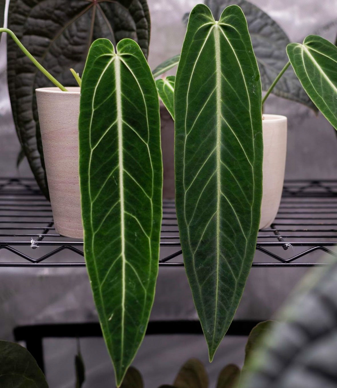 Das Anthurium Worocqueanum hat prächtige, herzförmige Blätter, die wirklich ein Hingucker sind. Jedes Blatt hat eine samtige Textur und eine faszinierende tiefgrüne Farbe, die an einen üppigen tropischen Dschungel erinnert. Die markanten Adern, die durch jedes Blatt verlaufen, verleihen ihm einen Hauch von kompliziertem Detail und verstärken seinen Reiz noch weiter.