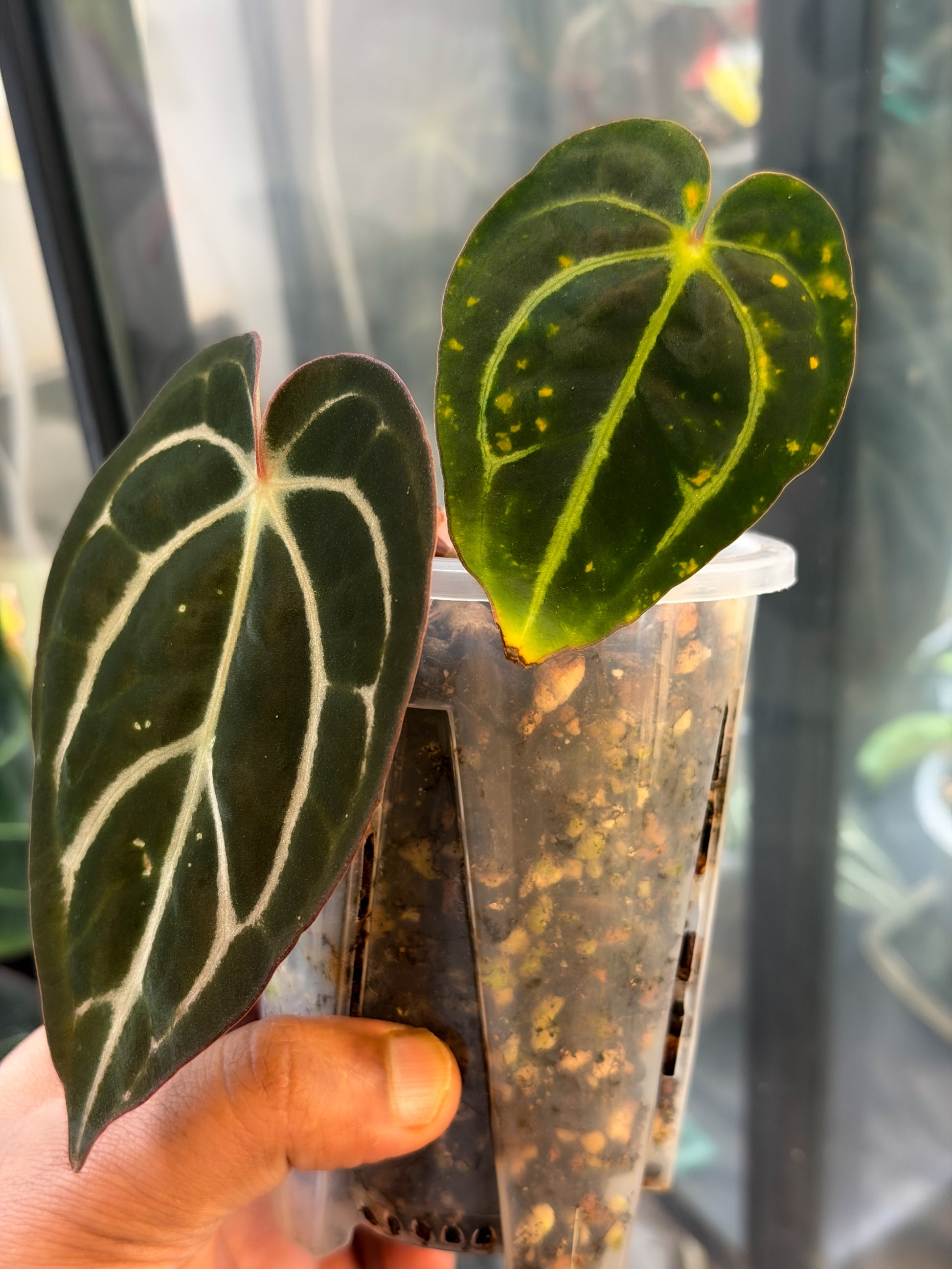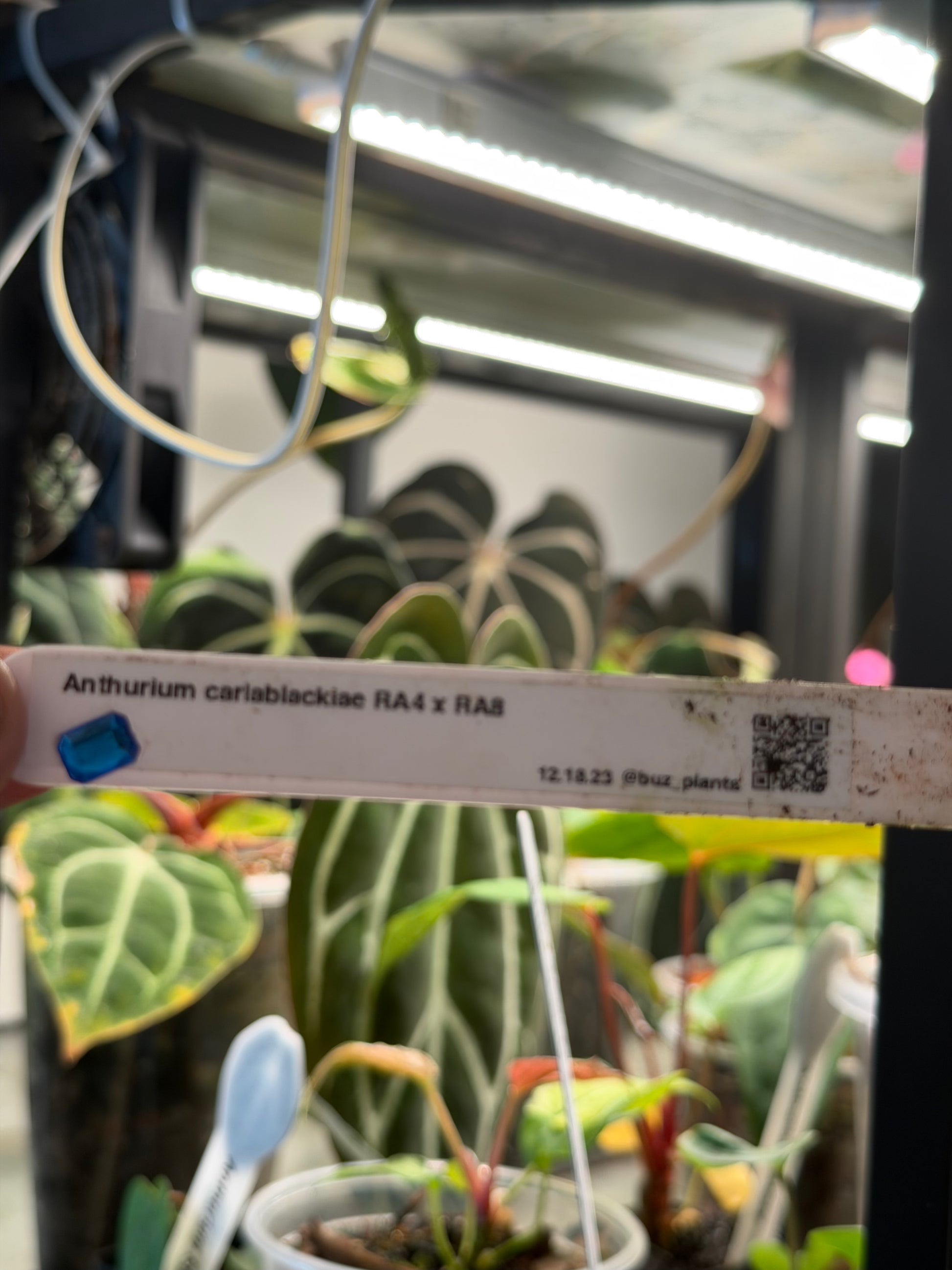 This listing is for a well-established offset of Anthurium Carlablackiae RA4 x RA8. The mother plant was purchased as a mature specimen directly from Brendan (@buz_plants) during our visit to the USA, and is shown in the pictures.