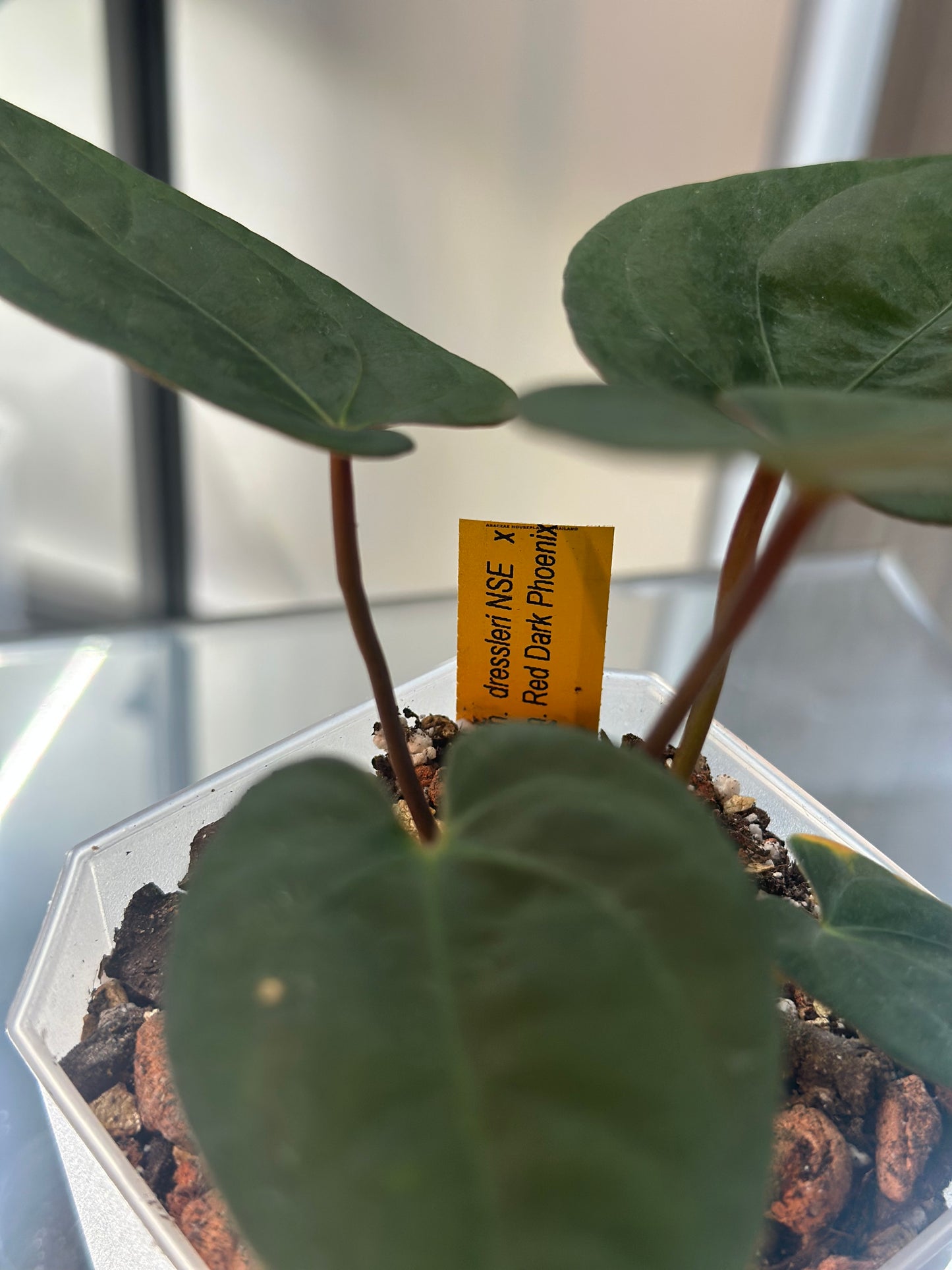 Introducing our Anthurium Dressleri (NSE) x RVDP, a striking hybrid that combines the best attributes of its parent plants. The mother plant is the exquisite Anthurium Dressleri from NSE Tropicals, while the pollen donor is the renowned Anthurium Red Vein Dark Phoenix (RVDP) from @Siam Flora, the original creators of this stunning variety.